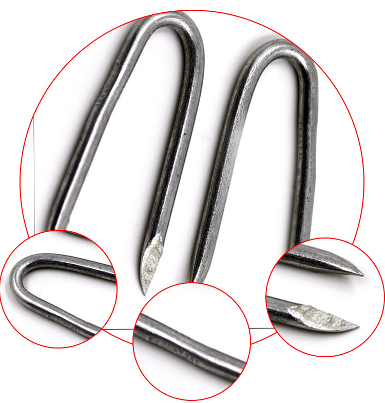 U nails refer to a kind of fasteners with two-pronged shanks. These U shaped nails are usually used for attaching the mesh fences to wooden posts and frame, hence the name fencing staples. The nail shanks are available in smooth and barbed types for different requirements. Barbed U type nails are the enhanced style which are designed for greater staying power during use. These practical nails can fix the wire, rope even barbed wire to the ground, wooden post or stakes. Therefore, people like to use them in agriculture & gardening, viticulture & other fruit growing, animal coops & plant trellises construction.