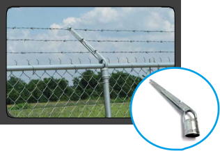 | Style | single slanted arm for three barbed wire strands |